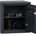 Dit houdt in dat het een gecertificeerde brandwerende kluis is, die de inhoud voor minimaal een 30 minuten beschermd tegen de hitte van een brand.