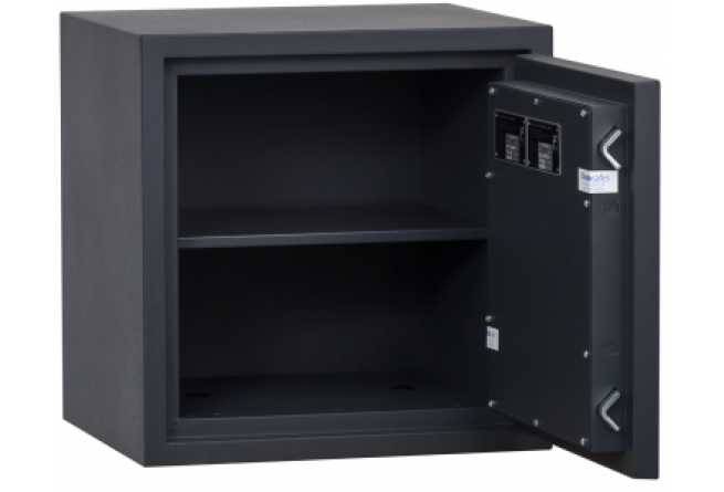 Dit houdt in dat het een gecertificeerde brandwerende kluis is, die de inhoud voor minimaal een 30 minuten beschermd tegen de hitte van een brand.