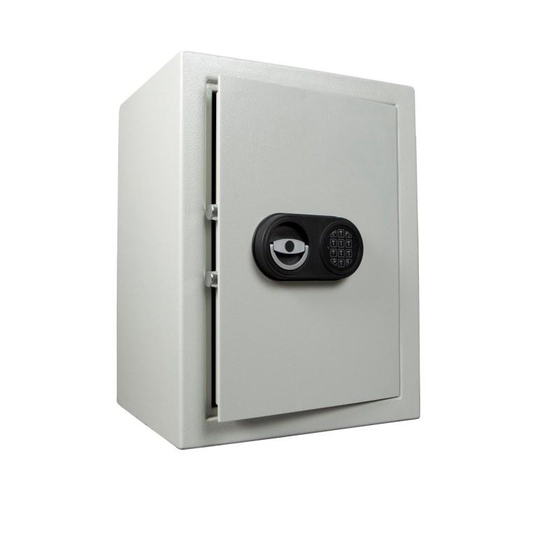 De Raat ET 3 is standaard uitgevoerd met een elektronische slot, gecertificeerd volgens EN 1300, en voorzien van een mangaanstalen beschermplaat op het slot.