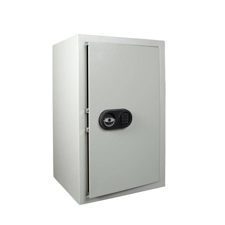 De Raat ET 8 is standaard uitgevoerd met een elektronische slot, gecertificeerd volgens EN 1300, en voorzien van een mangaanstalen beschermplaat op het slot.