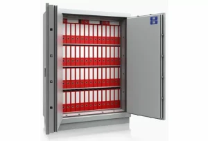 De Brandwerende klasse is EN 1047-1 S120P, 120 minuten brandwerend voor papier.