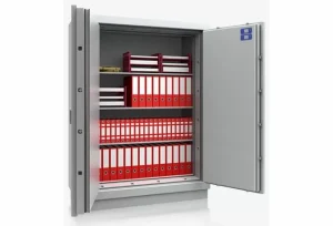 Dit houdt in dat het een gecertificeerde brandwerende kluis is, die de inhoud voor minimaal een 120 minuten beschermd tegen de hitte van een brand.