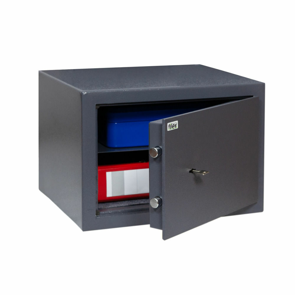 De Filex PS 1 heeft een gecertificeerd (EN 1300) dubbelbaard sleutelslot met twee sleutels.
