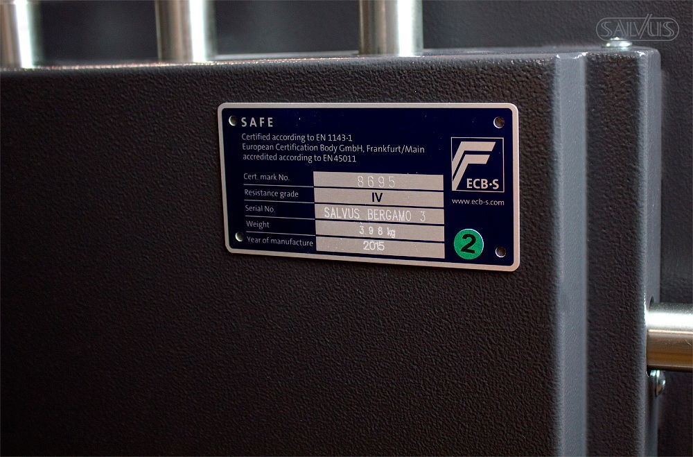 De Salvus Bergamo 2 heeft een inbraakwerend certificaat volgens EN 1143-1 Grade IV