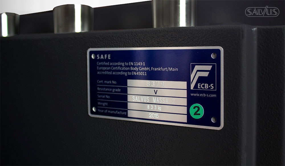 De Salvus Massa 1 heeft een inbraakwerend certificaat volgens EN 1143-1 Grade V