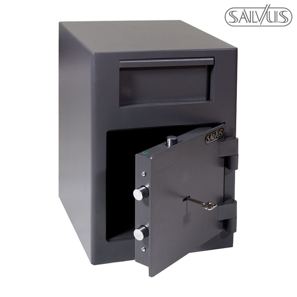 De Salvus Monopoli 1 afstortkluis is verkrijgbaar met een dubbelbaard sleutelslot gecertificeerd volgens EN 1300.