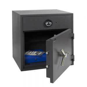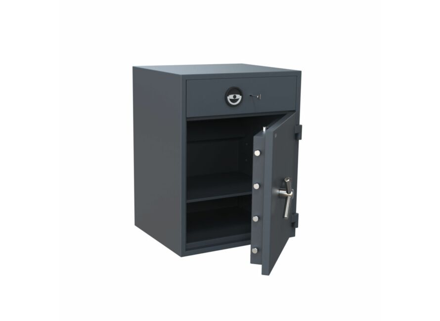 Inbraakwerende afstortkluis, voor het veilig afstorten van contant geld.