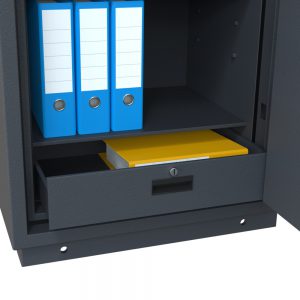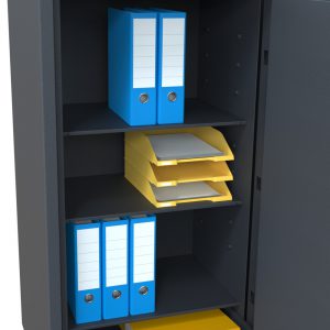 Standaard uitgevoerd met elektronisch slot, legborden in hoogte verstelbaar.